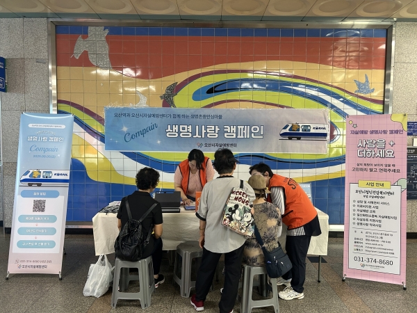 이번 캠페인은 세계 자살예방의 날을 기념해 한국철도공사와 함께 추진됐으며 오산역을 이용하는 시민을 대상으로 정신건강 선별검사를 실시하고 자살예방 관련해 도움이 되는 정보가 담긴 리플렛과 홍보물을 배포해 자살예방 서비스의 접근성을 높이고자 했다.
