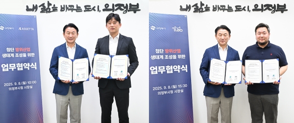 [금요저널] 의정부시는 9월 8일 드론 산업의 선도기업 ㈜아쎄따, 아이원랩㈜과 ‘첨단 방위산업 생태계 조성’을 위한 업무협약을 체결했다.