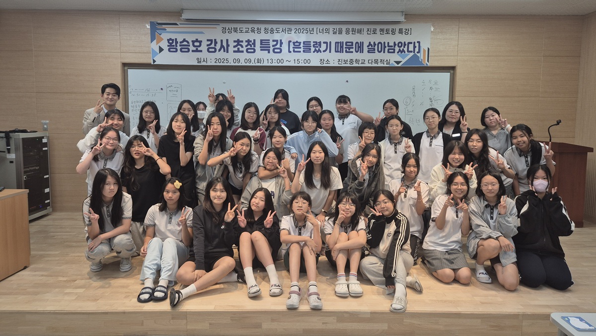 경상북도교육청 청송도서관(관장 김미연)은 9월 9일(화) 오후 1시, 진보중학교 다목적실에서 진보중학교 전교생을 대상으로 「너의 길을 응원해! 진로 멘토링 특강」을 운영했다.