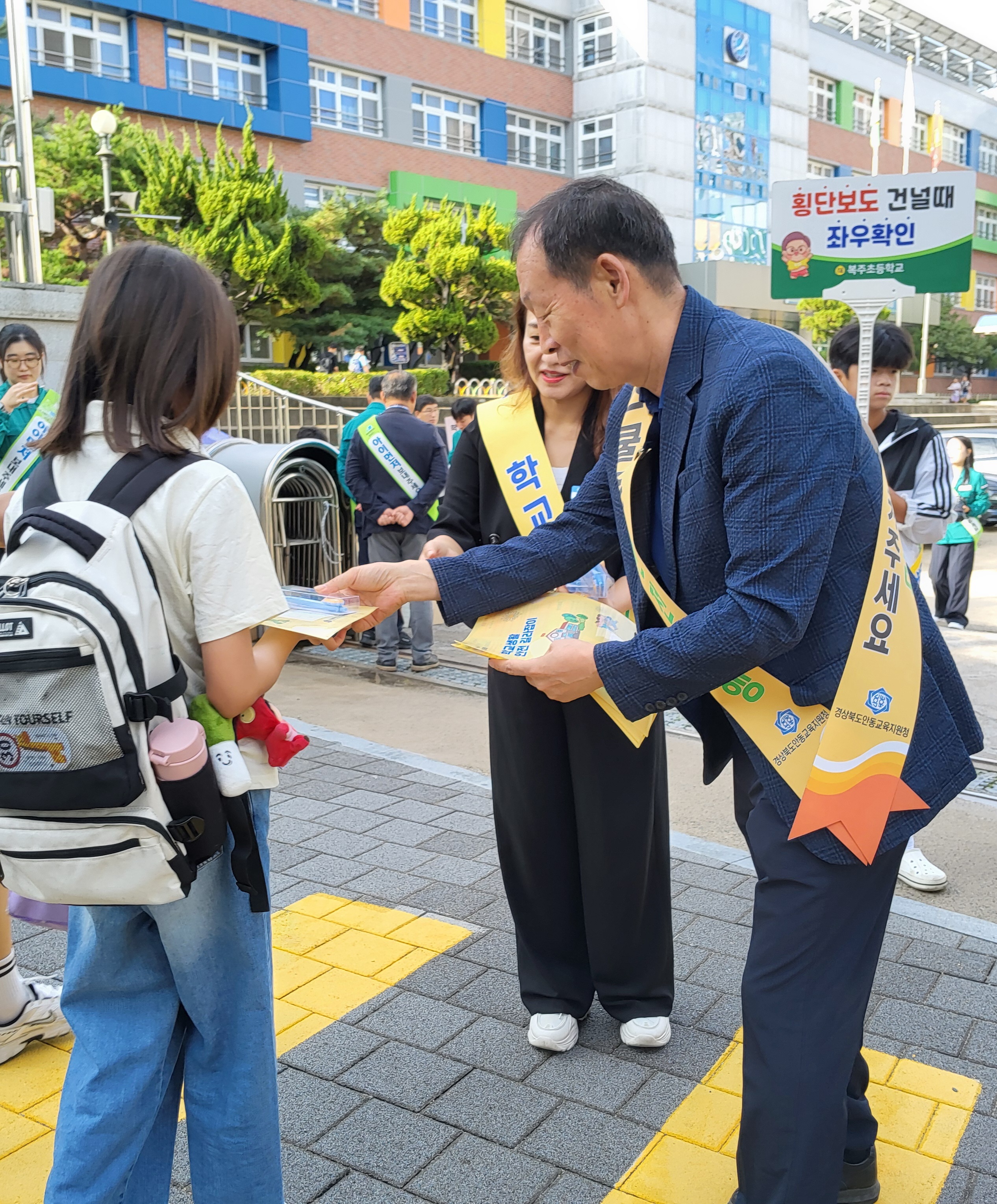□ 경상북도안동교육지원청(교육장 홍성중)은 2025년 9월 10일(수) 오전 8시부터 8시 40분까지 안동 복주초등학교 스쿨존 및 정문 후문 일원에서 ‘아이먼저’어린이 안전 캠페인을 실시하였다.