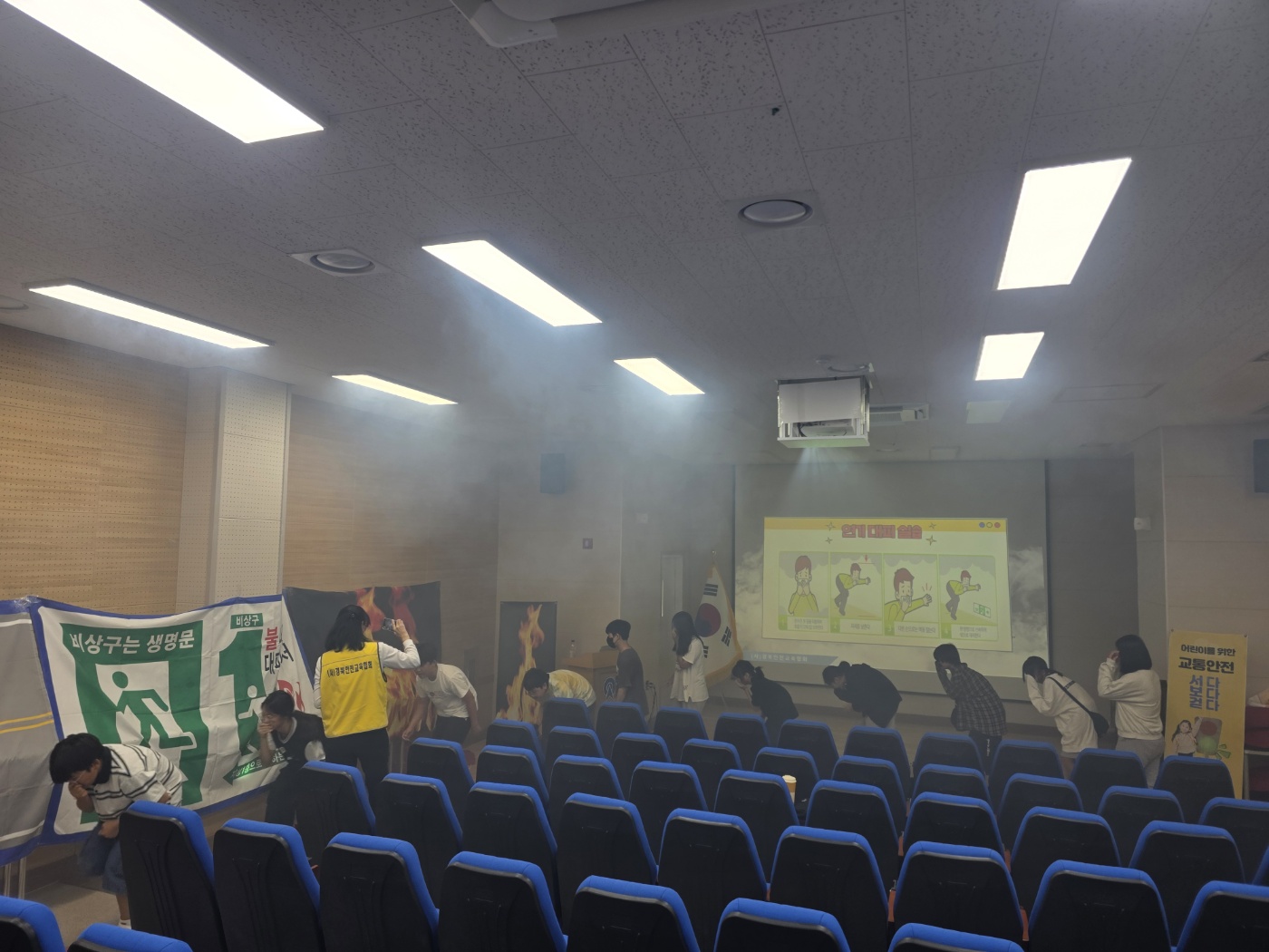 교통사고와 화재의 원인과 종류부터 시작해, 교통사고 예방 및 화재 시 대처 방법에 대한 이론 교육과 함께 연기 대피 훈련을 실시하며 실질적인 대응 방법을 익히는 데 중점을 두었다.