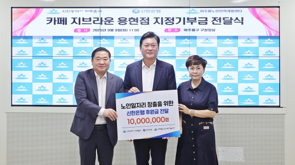 미추홀노인인력개발센터, 신한은행 미추홀구청점으로부터 1천만원 전달받아