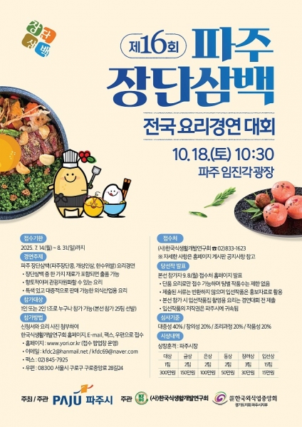 [금요저널] 파주시는 ‘제16회 파주 장단삼백 전국요리경연대회’ 본선 진출 25팀을 선정해 지난 8일 그 결과를 발표했다.