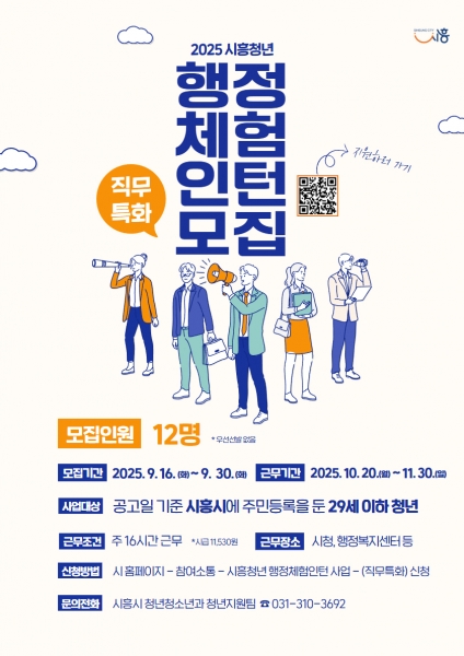 [금요저널] 시흥시는 2025년 하반기 행정체험 인턴 사업을 10월 20일부터 11월 30일까지 6주간 추진한다.