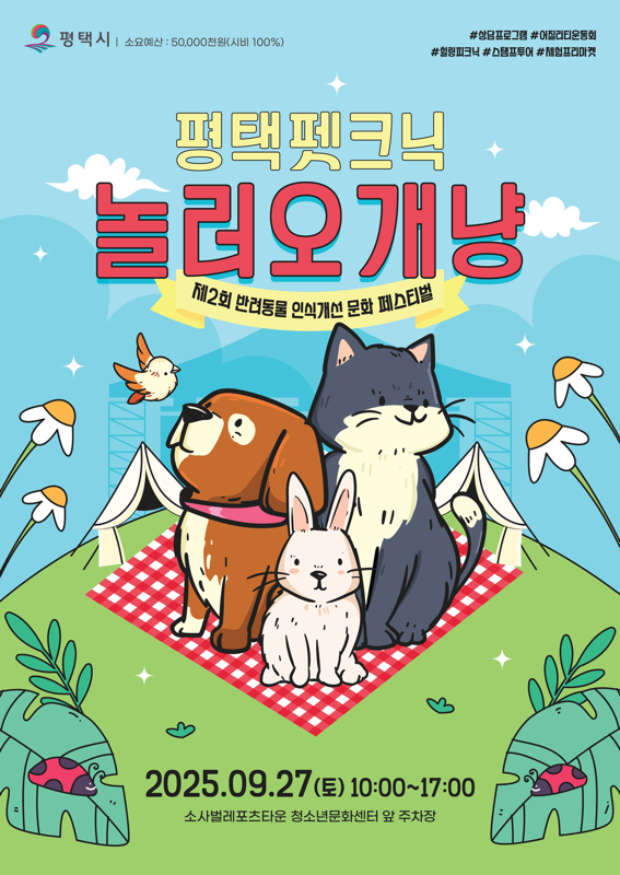 [금요저널] 평택시는 오는 27일 토요일 오전 10시부터 오후 5시까지 소사벌레포츠타운에서 ‘제2회 평택시 반려동물 인식개선 문화 페스티벌’을 개최한다고 밝혔다.