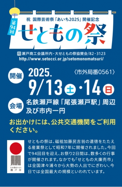 세토시를 대표하는 세토 도기제는 자조 가토 다미키찌옹의 유덕을 기리기 위해서 1932년부터 시작되어 올해로 94번째를 맞이한다.