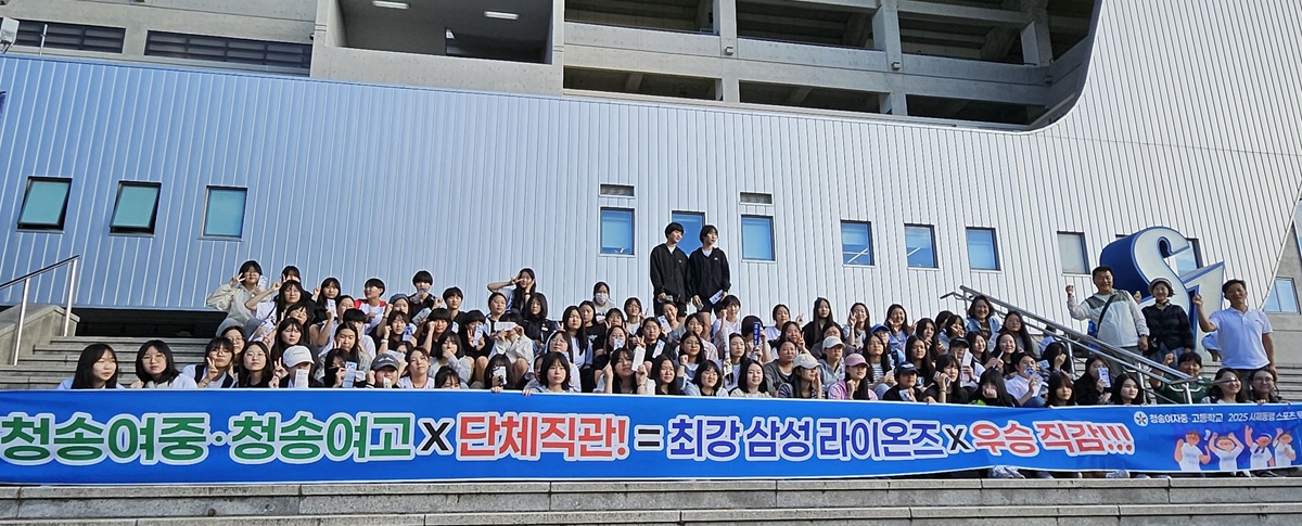청송여자중고등학교(교장 박현배)는 2025년 9월 11일 목요일 학생들과 교사들은 사제 동행 프로그램으로 프로야구 경기를 함께 관람했다. 이번 활동은 교실을 벗어나 스포츠를 통해 소통하고 협력하는 즐거움을 경험하기 위해 마련하였다.