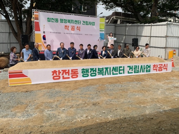 이날 착공식은 창전동 행정복지센터 건립의 시작을 알리기 위한 자리로 기관단체장, 지역 주민 등 100여명이 참석한 가운데 성황리에 진행됐다.