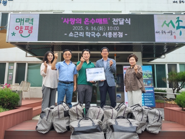 [금요저널] 양평군 서종면은 16일 소근리 막국수 서종본점에서 서종면사무소를 방문해 440만원 상당의 온수 매트 10채를 기탁했다고 밝혔다.