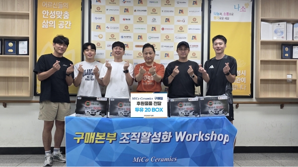 이날 ㈜미코세라믹스 구매팀은 장마와 무더위로 지친 어르신들께 작은 힘이 되길 바라는 마음을 담아 건강 음료인 두유 480인분을 준비해 따뜻한 안부 인사와 함께 전달했다.