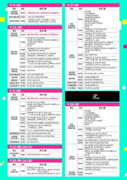 축제는 분당중앙공원을 시작으로 판교, 분당구청 잔디광장, 희망대근린공원 등 성남 전역으로 이어진다.
