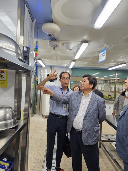 [금요저널] 경기도의회 교육기획위원회 김호겸 의원은 지난 9월 16일 평택시 소재 평택초등학교를 방문해 학교 급식실 환기설비 개선 현황을 점검했다.