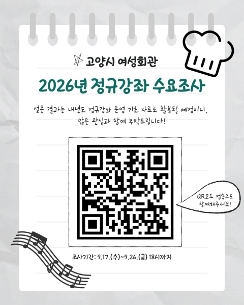 고양시 여성회관, 2026년 정규강좌 개설 수요조사 실시
