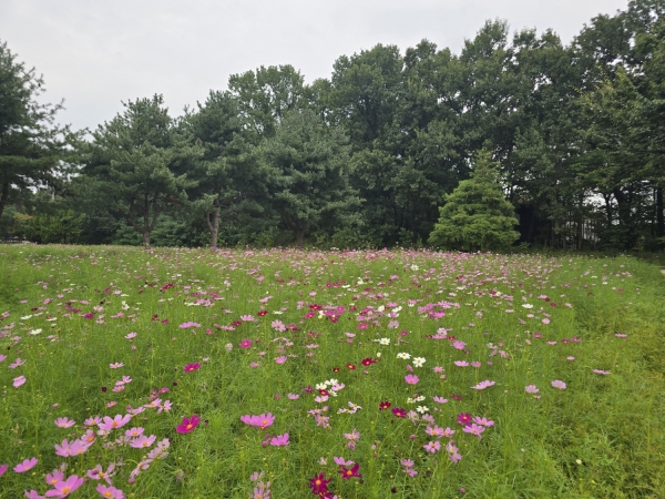 일반 코스모스, 빅스타, 황화코스모스가 어우러져 화려한 가을 풍경을 선사한다.