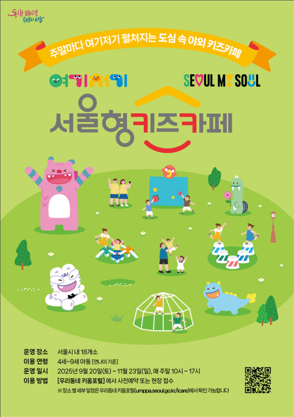 서울시는 꾸준히 증가하고 있는 서울형 키즈카페 이용 수요에 맞춰 가족 단위 방문객들이 쉽게 접근할 수 있는 실내·외 공간을 발굴, 주말에만 여는 ‘여기저기 서울형 키즈카페’를 새롭게 시작한다고 밝혔다.
