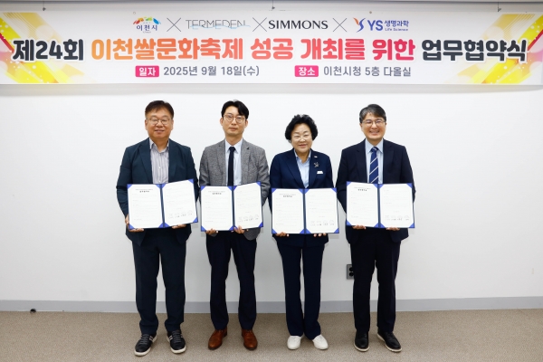 [금요저널] 이천쌀문화축제추진위원회는 9월 18일 테르메덴, 시몬스, YS생명과학과 업무협약을 체결했다고 밝혔다.