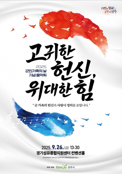 [금요저널] 양주시는 오는 9월 26일 오후 1시 30분, 경기섬유종합지원센터 컨벤션홀에서 ‘2025 군인가족의 날 기념행사’를 연다.