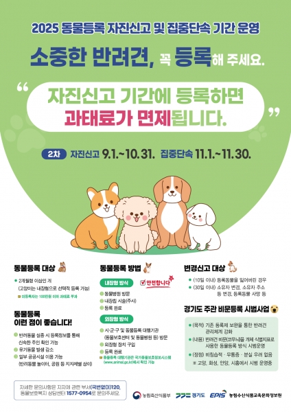 2025 동물등록 자진신고, 집중단속 기간 운영 홍보물.