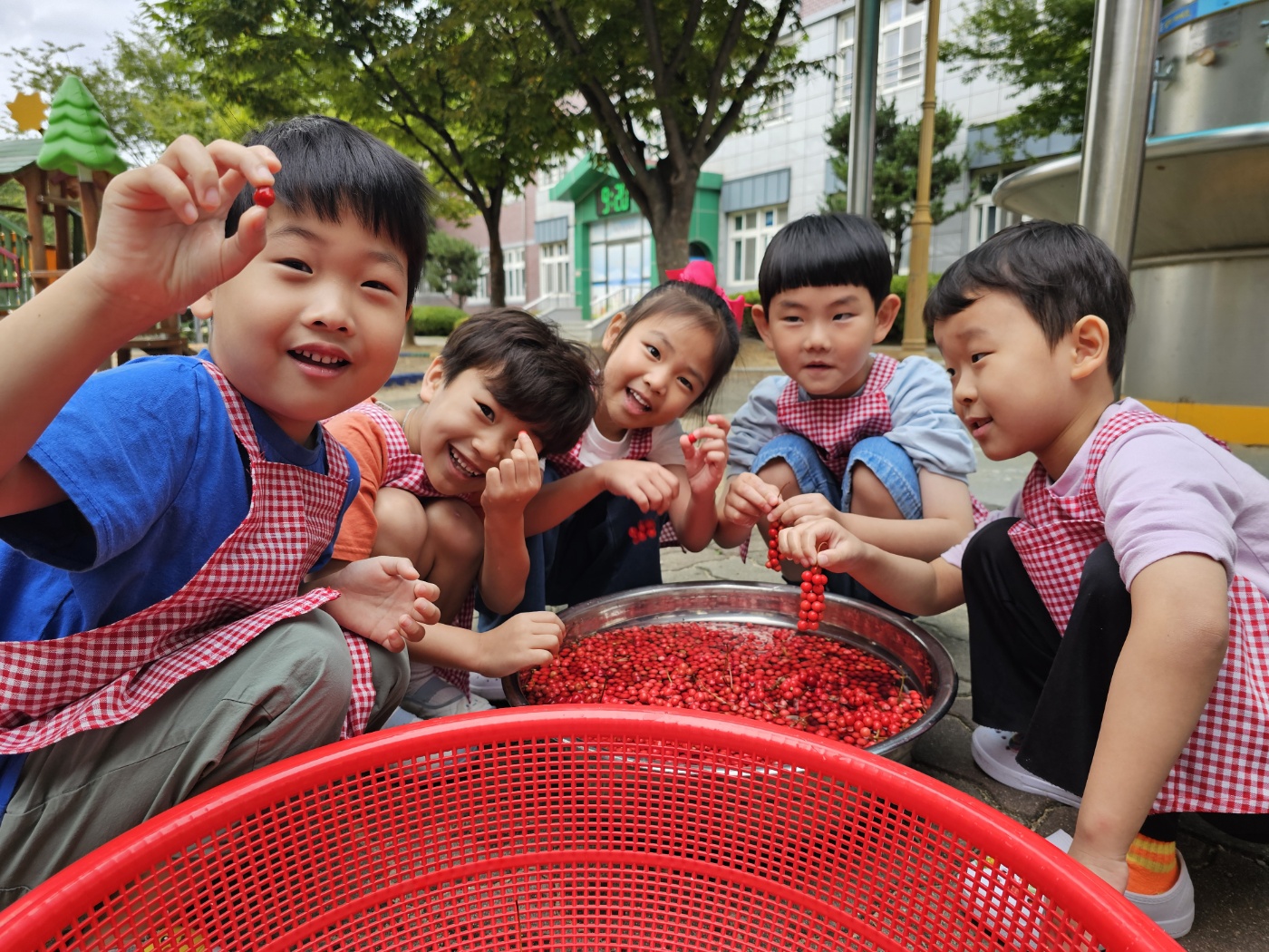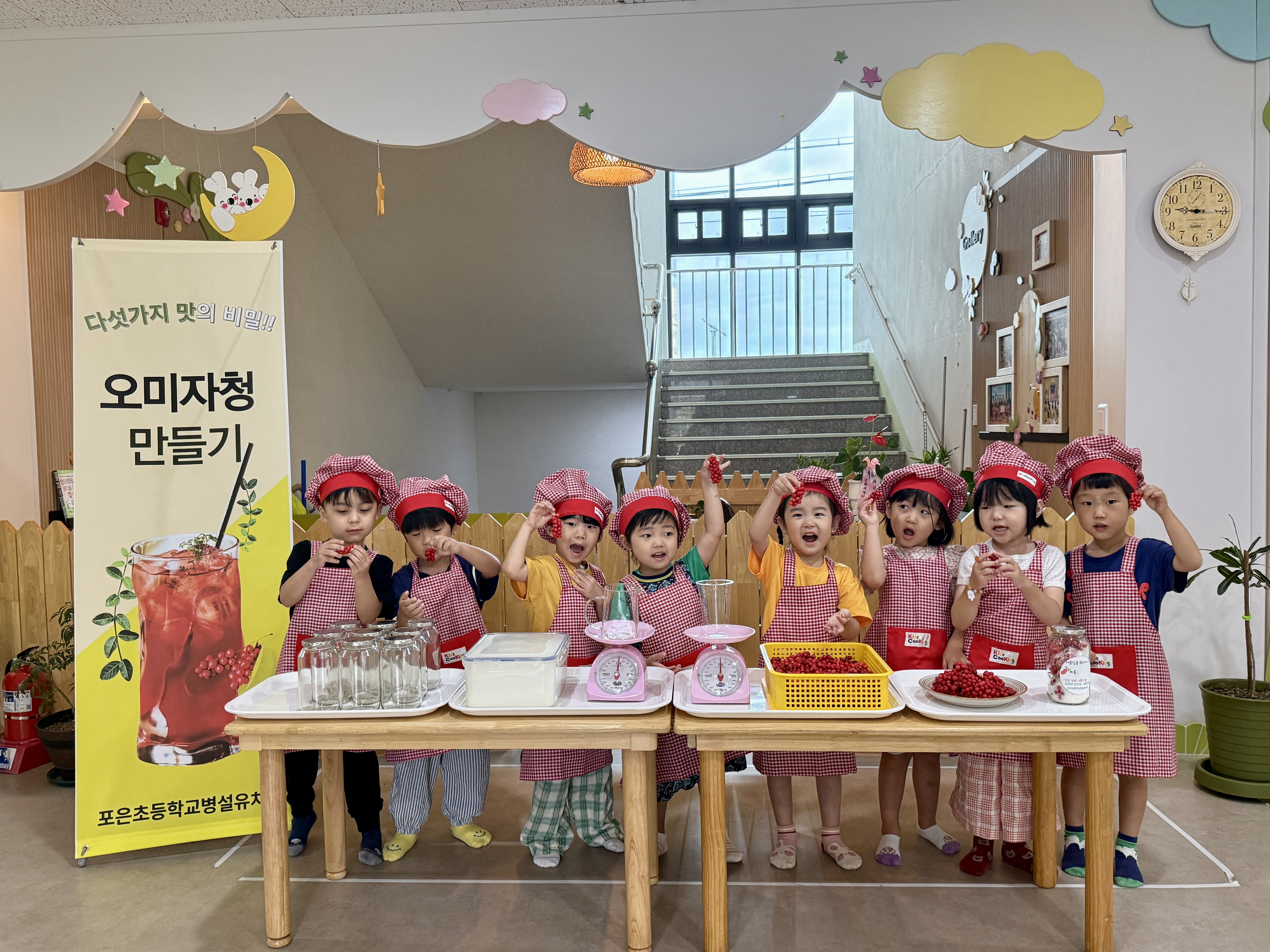 □ 포은초등학교병설유치원(원장 박우형)은 9월 19일(금) 유아를 대상으로 유치원에서 오미자청 만들기 체험을 실시했다. 이번 체험은 유치원의 특색 있는 교육과정의 일환으로, 가을 맞이 특별 체험으로 실시되었다.