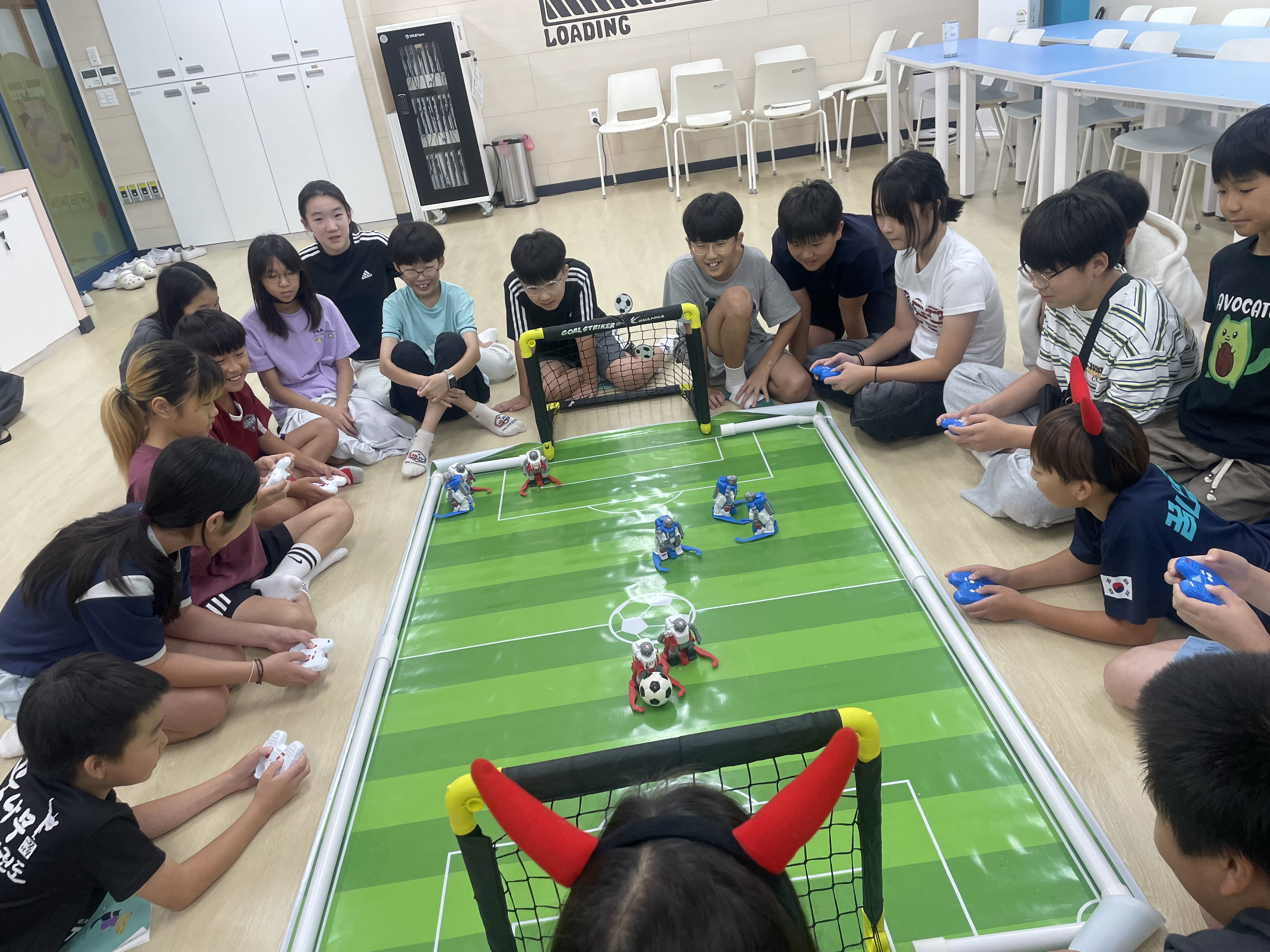 □ 이어 2교시부터 6교시까지는 5~6학년 대상으로 학교 곳곳 11개의 체험 부스에서 다채로운 AI 융합 프로그램이 운영되었다. 학생들은 드론축구, 로봇사커, AI GPT, 메타버스(제페토), 기후변화 코딩, 메타퀘스트 VR 등 다양한 활동을 직접 체험하며 미래 기술을 흥미롭게 접했다.
