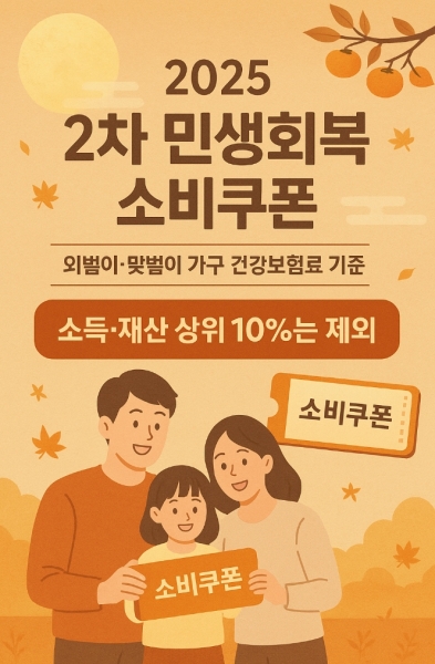 2차 소비쿠폰 사업은 2025년 6월 건강보험료 기준으로 가구소득 하위 90%를 대상으로 하며 지원금은 1인당 10만원이다.