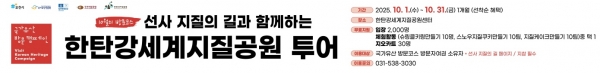 [금요저널] 포천시는 국가유산청 주최, 국가유산진흥원이 주관하는 국가유산 방문 캠페인 10월 방문코스가 ‘선사 지질의 길’로 정해지면서 포천 한탄강세계지질공원에서 다양한 체험 프로그램을 마련했다고 전했다.