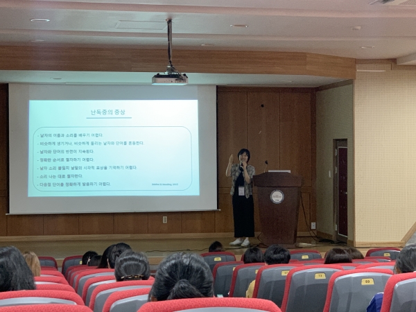 연수에서는 난독 아동의 특성과 학습 과정에서의 좌절 경험 이해, 가정에서의 실천 전략 및 교재 활용법, 학교와의 협력 사례 등을 다뤘다.