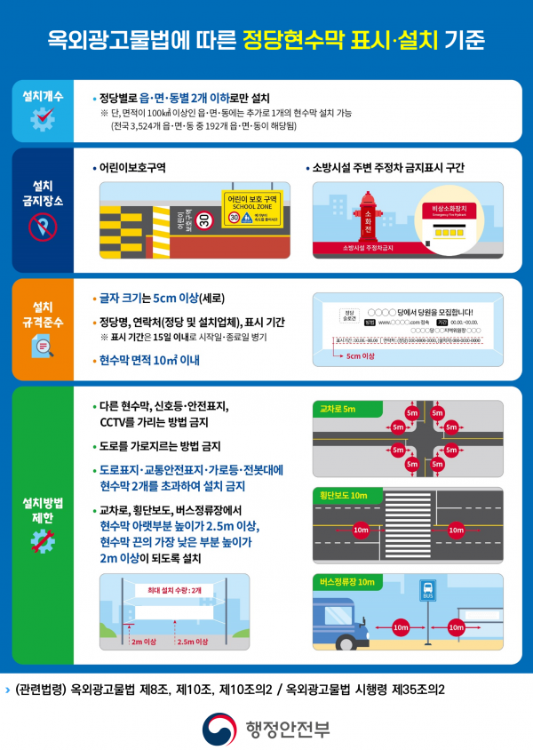 [금요저널] 행정안전부는 9월 24일부터 10월 17일까지 3주간 불법광고물 설치 실태를 점검하고 법령 위반 현수막 일제 정비를 실시한다고 밝혔다.