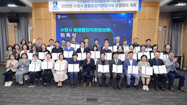 수원시는 23일 시청 중회의실에서 ‘수원시 돌봄통합지원협의체’ 위촉식을 열었다.