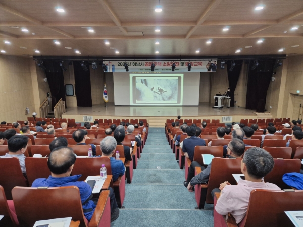 [금요저널] 하남시는 23일 시청 별관 대강당에서 관내 공동주택 관리업무 종사자 등 100여명을 대상으로 ‘2025년 공동주택 소방안전 및 방범 교육’을 실시했다고 밝혔다.