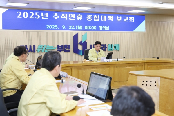 [금요저널] 부천시는 지난 22일 시청 창의실에서 조용익 시장을 주재로 부시장을 비롯한 국장과 부서장이 참석한 가운데 ‘2025년 추석 연휴 종합대책 보고회’를 열었다.