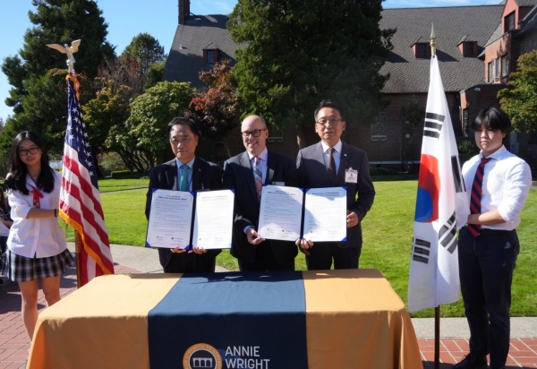 이날 협약식에는 강정구 평택시의회 의장, 정장선 평택시장, 애니 라이트 스쿨 데이비드 오버튼 이사장, 제이크 과드놀라 교장을 비롯한 학교 관계자, 학부모, 학생, 지역 인사들이 함께했다.