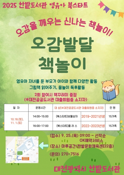 [금요저널] 대전 한밭도서관은 상반기에 이어 하반기에도 영유아 독서문화 프로그램 ‘북스타트’를 운영한다고 24일 밝혔다.