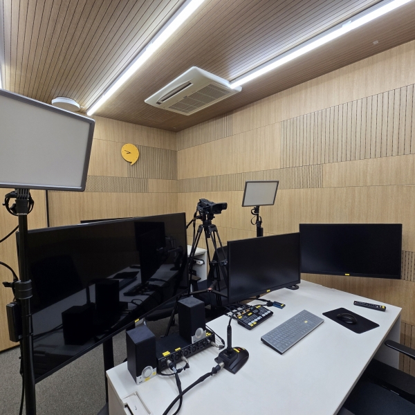 시흥시중앙도서관 ‘e-스튜디오’는 PC, 캠코더, 비디오 캡처 장비, 조명, 마이크, 오디오 인터페이스 등 다양한 장비를 갖추고 있어 고품질 영상 편집과 제작, 유튜브 송출, 웹 업로드까지 가능한 복합 미디어 제작 공간이다.