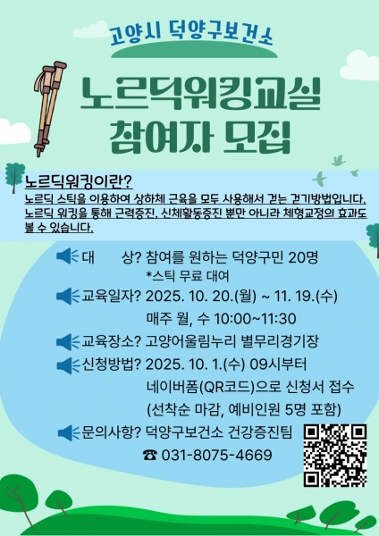 고양시 덕양구보건소, ‘노르딕워킹교실’ 참여자 모집