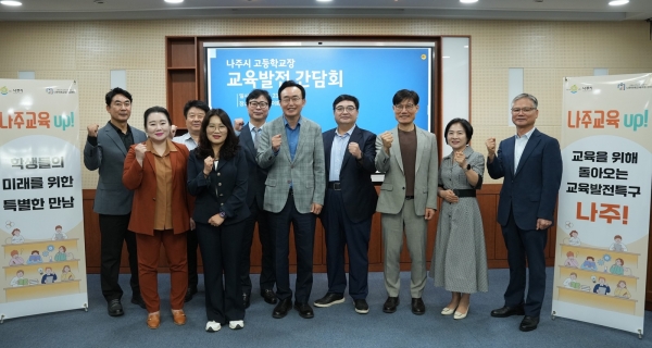 간담회에는 윤병태 나주시장을 비롯해 박찬주 나주미래교육지원센터장과 나주시 관내 8개 고등학교 교장이 참석했으며 학교 현장의 의견과 나주시 교육 지원 정책 방향을 공유하는 뜻깊은 시간을 가졌다.