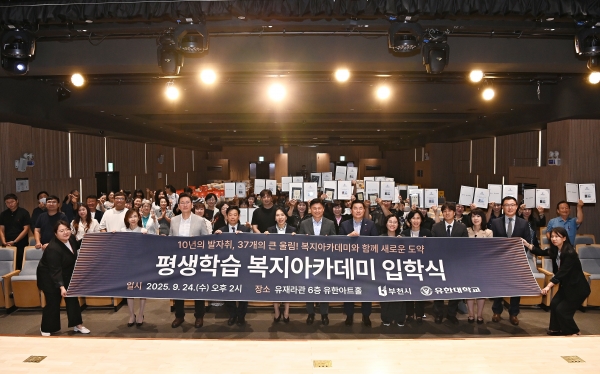 [금요저널] 부천시는 지난 24일 유한대학교에서 ‘부천시·유한대학교 복지아카데미’ 입학식과 업무협약식을 열었다.