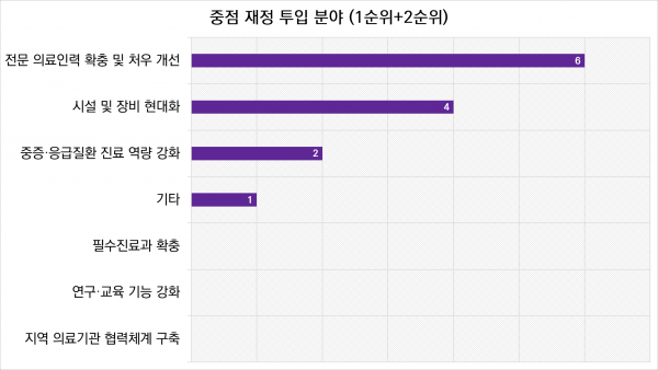 이어 ‘시설 및 장비 현대화’ 4곳, 중증·응급질환 진료 역량 강화는 2곳 순으로 나타났다.