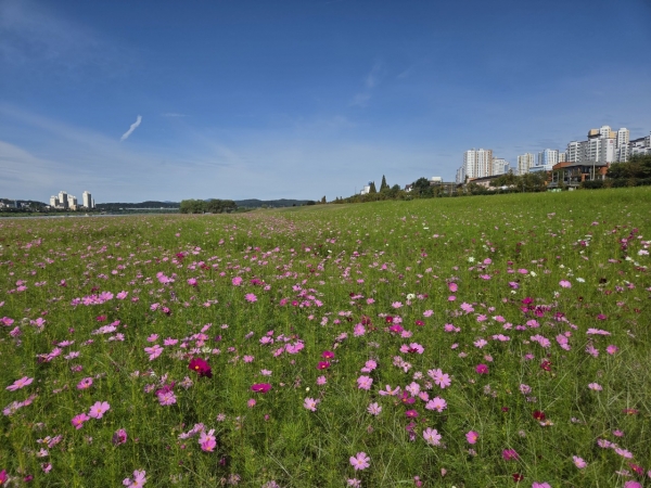 이번 코스모스 단지는 시민들이 도심 속에서도 계절의 변화를 만끽할 수 있도록 기획됐으며 앞으로 10월 초순까지 만개해 절정을 이룰 전망이다.