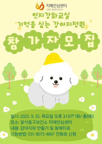 고양시 일산동구보건소 치매안심센터, 인지강화교실‘기억을 심는 강아지정원’ 참가자 모집