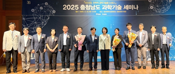 충남도와 공동으로 개최한 이번 세미나는 ‘AX 시대, 전략적 과학기술을 논하다’를 주제로 잡고 충남연구원 전희경 원장과 백주현 과학기술진흥본부장, 충남도의회 기획경제위원회 안장헌 위원을 비롯한 각계 전문가들이 참여해 과학기술 분야의 변화와 혁신 흐름을 짚고 충남이 앞으로 나아갈 전략적 방향을 논의하는 장으로 마련됐다.