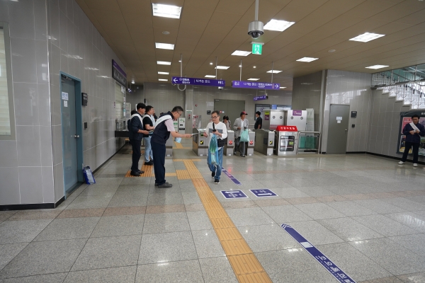 [금요저널] 용인특례시는 25일 용인경전철 용인중앙시장역에서 에스컬레이터 안전사고 예방 캠페인을 진행했다고 26일 밝혔다.