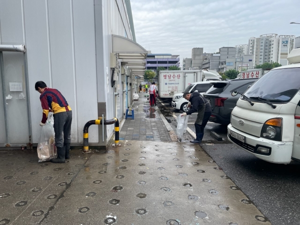 도매시장 보도와 차도, 지상·지하 주차장, 녹지공간, 흡연부스 등 이용객이 많이 찾는 구역을 청소했다.