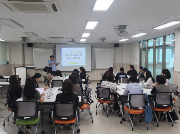 ‘승기천 공감학교’는 동부권역마을교육지원센터 마을연계프로그램의 하나로 학생·학부모·주민이 승기천의 역사·생태·인문 가치를 배우고 탐방하며 도시 하천 생태복원의 중요성을 공감하는 교육과정이다이번 프로그램은 9월 11일부터 총 10회에 걸쳐 진행됐으며 참가자들은 선학마을 강당에서 이론 수업을 듣고 승기천 현장을 탐방하며 하천의 역사·생태·인문적 가치를 배웠다.