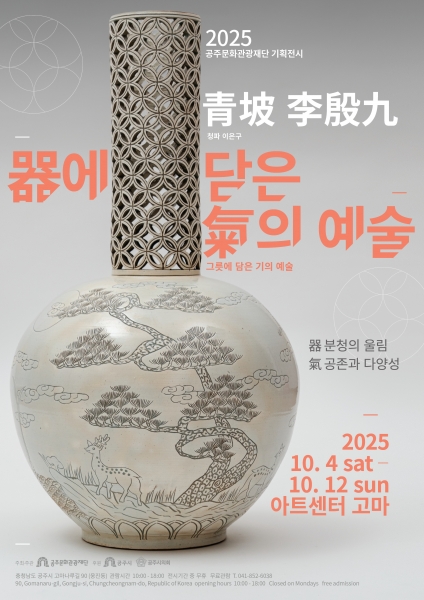 [금요저널] 공주문화관광재단은 오는 10월 4일부터 10월 12일까지 아트센터고마에서 전통과 현대를 잇는 분청의 울림과 정신을 계승해 온 청파 이은구 작가의 ‘器에 담은 氣의 예술’ 특별기획전을 개최한다.