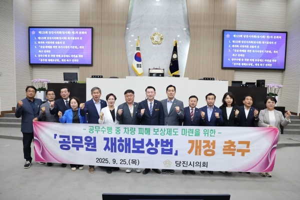 [금요저널] 당진시의회는 25일 열린 제123회 임시회 제1차 본회의에서 심의수 의원이 발의한 ‘공무원 재해보상법’ 개정 촉구 건의안을 채택했다.