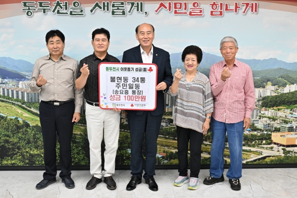 박형덕 동두천시장은 “지역사회에 귀감이 되는 따뜻한 나눔을 실천해 주신 불현동 34통 주민들과 송요흥 통장님께 감사드린다”며 “기탁된 성금은 도움이 꼭 필요한 가정에 소중히 전달하겠다”고 밝혔다.
