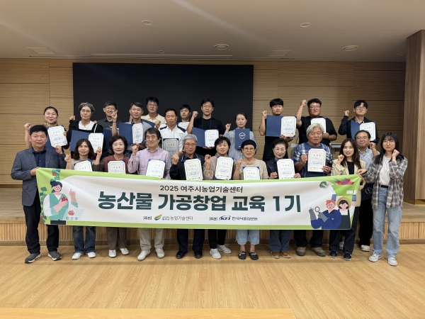 [금요저널] 여주시농업기술센터는 지난 26일 농업기술센터 친환경교육관에서 ‘2025년 농산물가공창업교육 1기 수료식’을 개최했다.