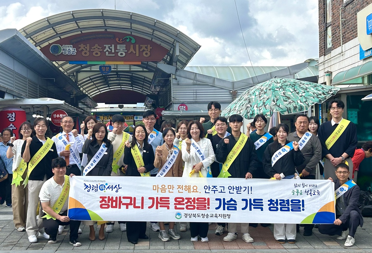 경상북도청송교육지원청(교육장 남정일)은 추석 명절을 앞두고 2025. 9. 29.(월) 청송재래시장에서 전통시장 활성화와 청렴 문화 확산을 위한 장보기 행사를 진행하였다.