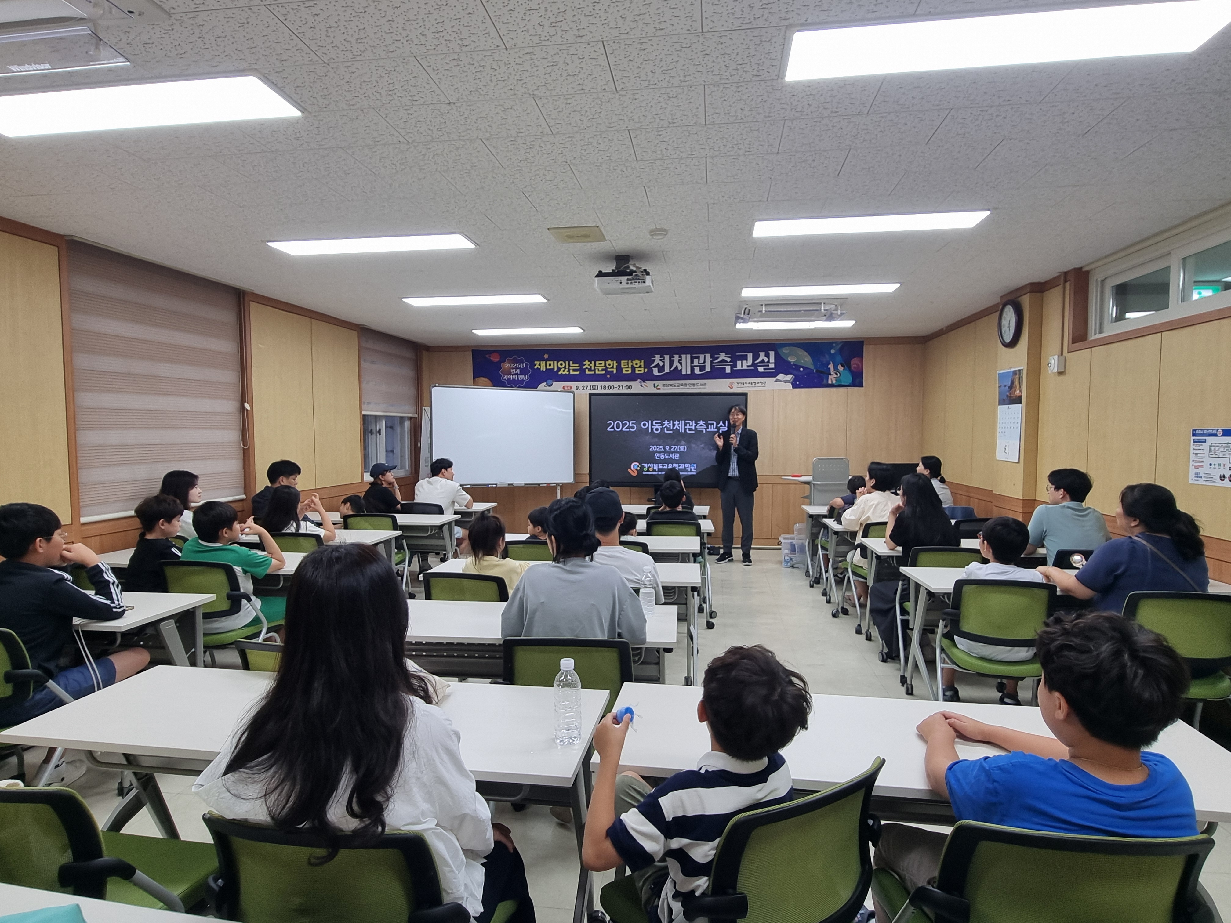 □ 경상북도교육청 안동도서관(관장 반선자)은 독서의 달을 맞아 경상북도교육청과학원(원장 진재서)과 협력하여 9월 27일(토) 오후 3시부터 9시까지 도서관에서‘별과 과학의 만남’과학체험 프로그램을 성황리에 마무리하였다.